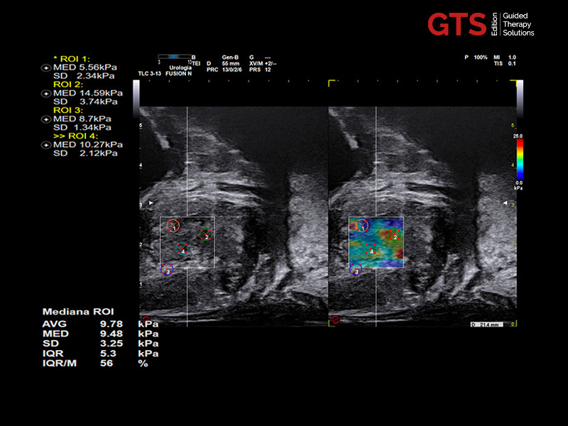 ElaXto and QElaXto 2D are Esaote’s strain and shear wave elastography technologies, which provide information on tissue elasticity by displaying a color-coded map representing prostate stiffness either relatively or quantitatively.