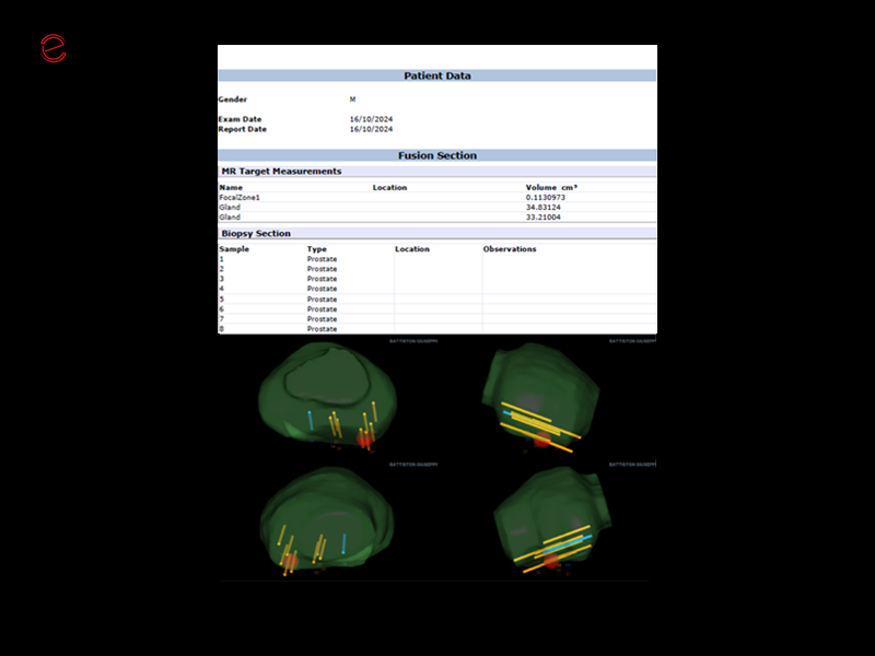 The targeted and systematic biopsy samples will be automatically saved in a 3D prostate rendering volume, a complete and clear report is automatically completed and attached to each procedure.