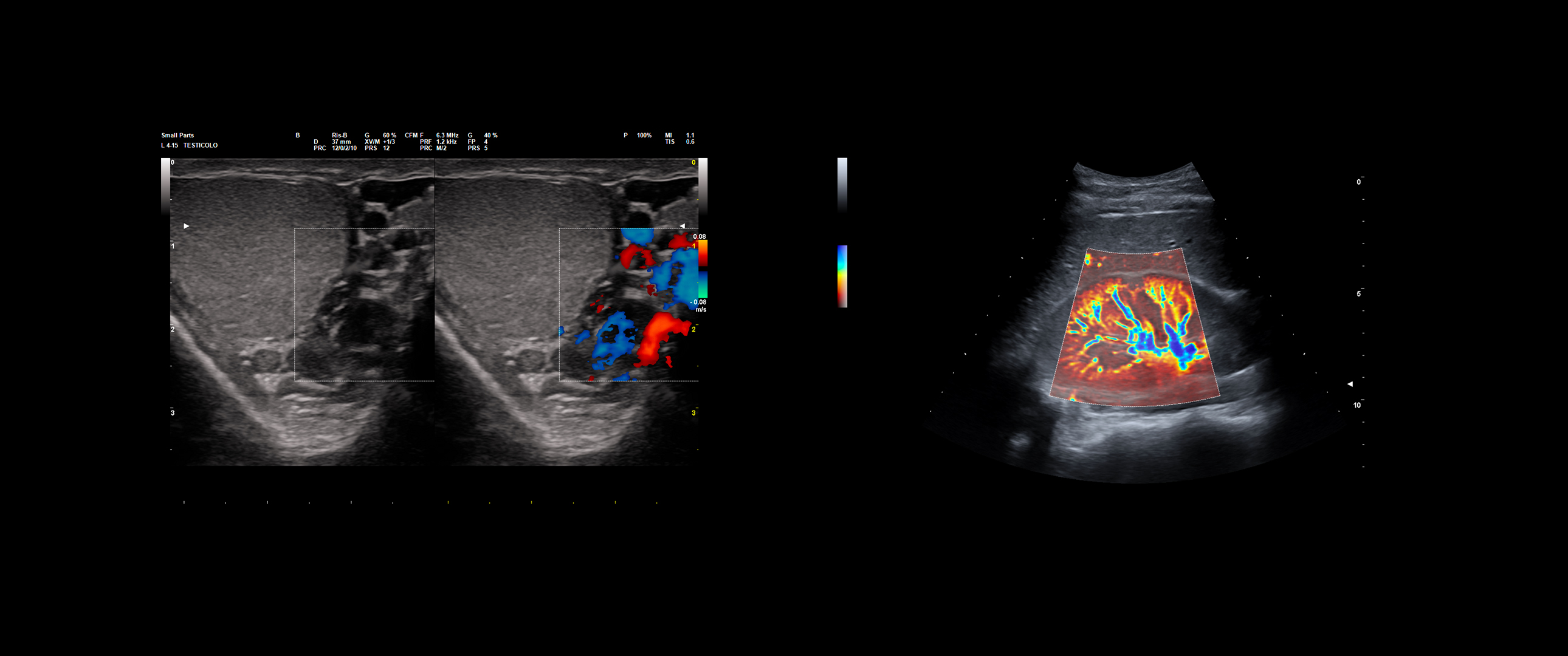 Testis Varicocele under HF linear transducer examination - Micro-vascularization on kidney through microV